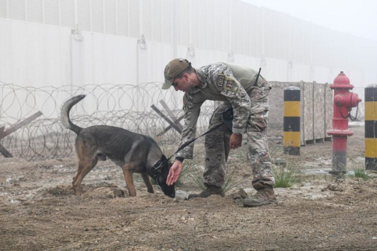The 380th Expeditionary Security Forces Squadron continues to “Hold the Line” at Al Dhafra Air Force Base, United Arab Emirates. In order to achieve that, consistent training, vigilance and teamwork are required to ensure nothing slips by undetected. Although the Defenders of ADAB are trained, equipped and ready to handle whatever threats may come their way, it doesn’t hurt to have a little help from a friend — especially one that walks on four legs.