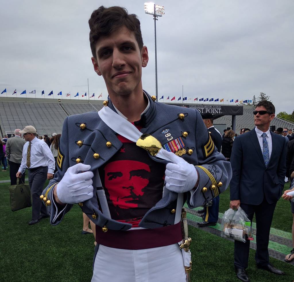 Spencer Rappone did not get in trouble for being a communist, but for wearing a Che Guevara shirt under his uniform, thereby suggesting his personal support of this infamous killer of homosexuals in revolutionary Cuba was endorsed by the U.S. military. Photo: Army Times of Rappone’s social media postings