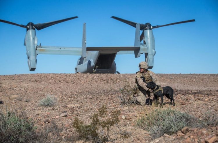 US Marine K-9 handlers and their military working dogs train at Yuma Proving Grounds.