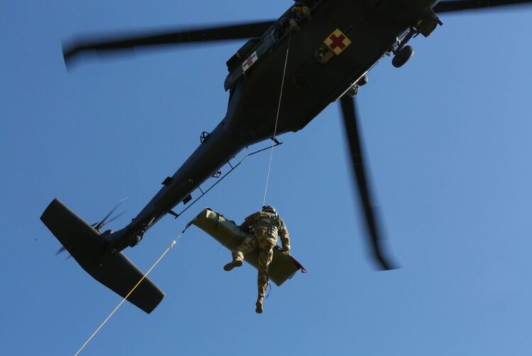 Soldiers with the 3rd Battalion, 238th Aviation Regiment, Cox Health and the Missouri State Highway Patrol hold a joint MEDEVAC training.