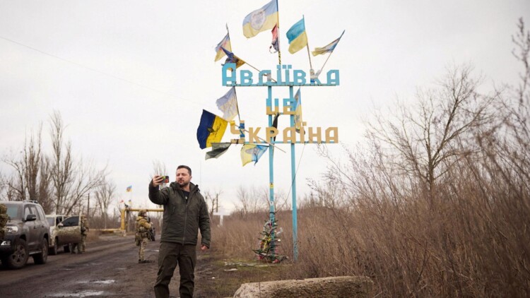 Today, we focus on Ukrainian President Volodymyr Zelensky pausing to take a video selfie near a sign outside the frontline town of Avdiivka, in the Donetsk Oblast. You can watch the full video below.