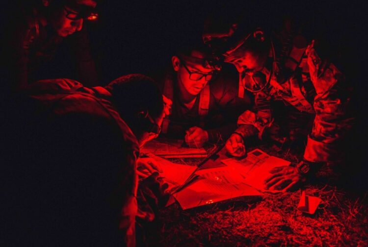 Military maps are “red light readable,” allowing the soldier to plot a course without compromising his night vision.