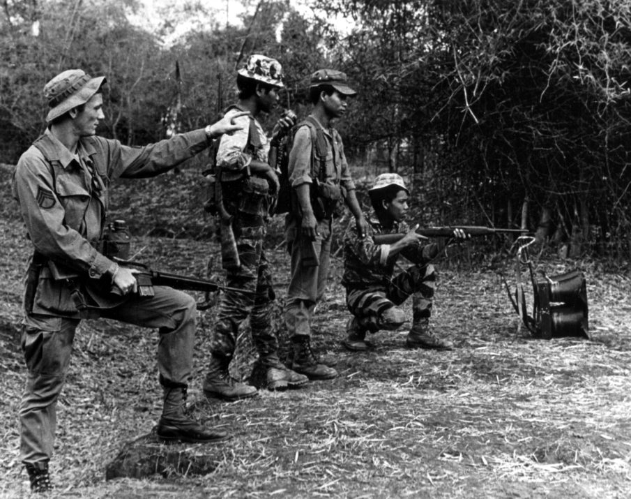 The OSS teams in Burma working with the Karens and the Kachins. Like the Montagnards… splendid and well-motivated manpower. Of course the teams didn’t have to mess with any Burmese government (collaborators with the Japanese) and the tribal chieftains were more than willing to please.