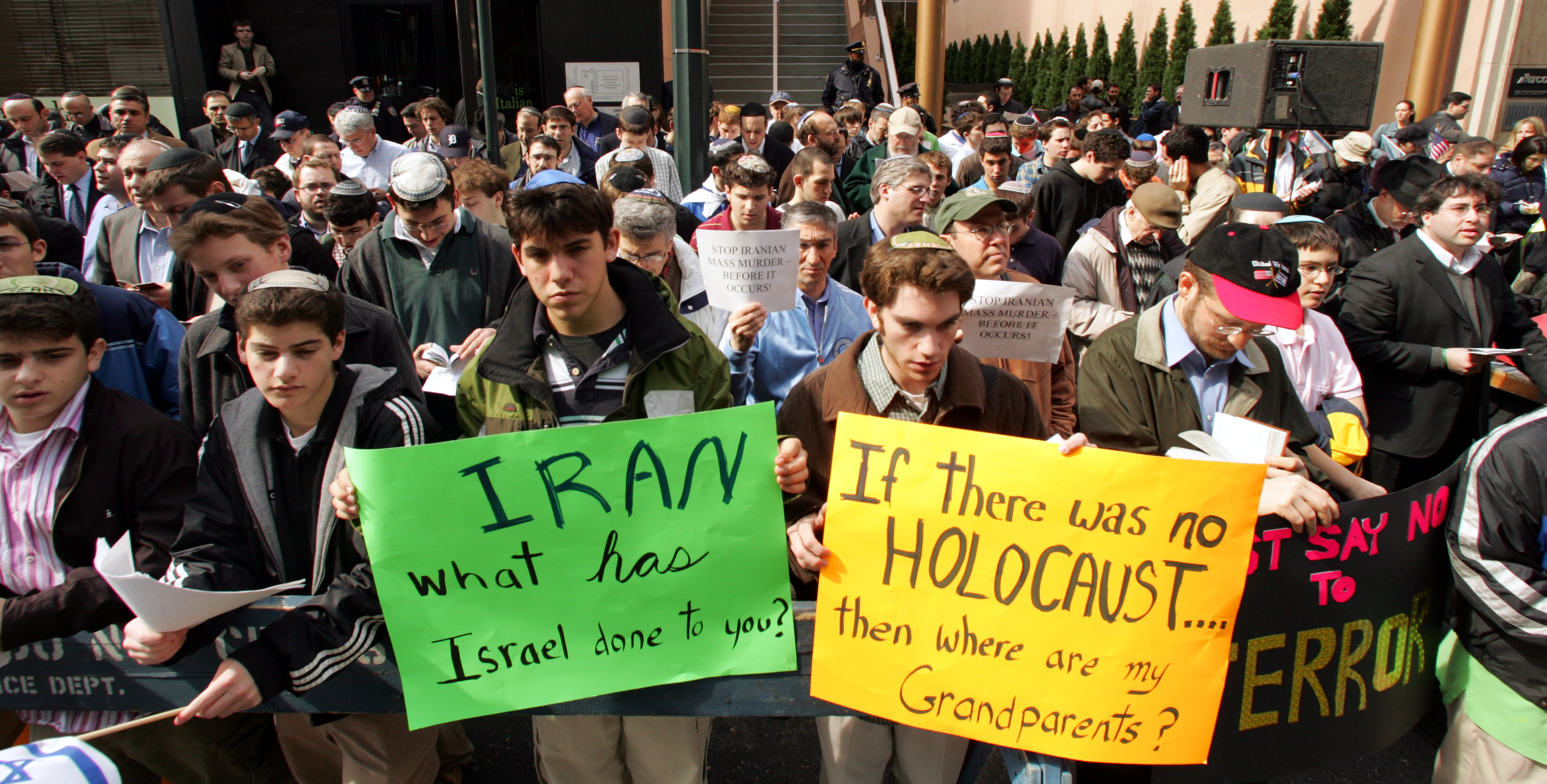 Amcha, the Coalition for Jewish Concerns holds a rally in front of the Iranian Permanent Mission to the United Nations in response to Iranian President Mahmoud Ahmadinejad’s threats against Isreal and denial of the Holocaust, Monday, March 13, 2006 in New York. | AP Photo/Mary Altaffer