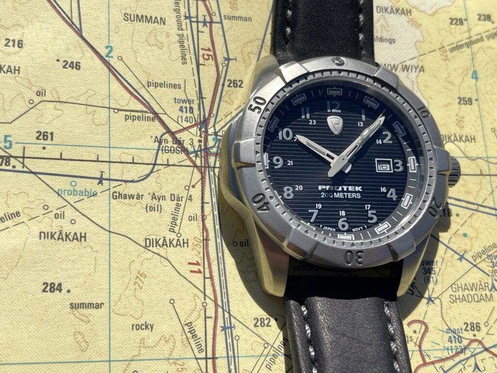 The case hits the sweet spot on size, coming in at 42mm. Weight is a modest 73.2 grams. It’s just a tick under 14mm thick, with ProTek giving us an official measurement of 13.95 grams. Powering the watch is a Japanese Quartz Miyota 2S60 rated at +/- 20 seconds per month.