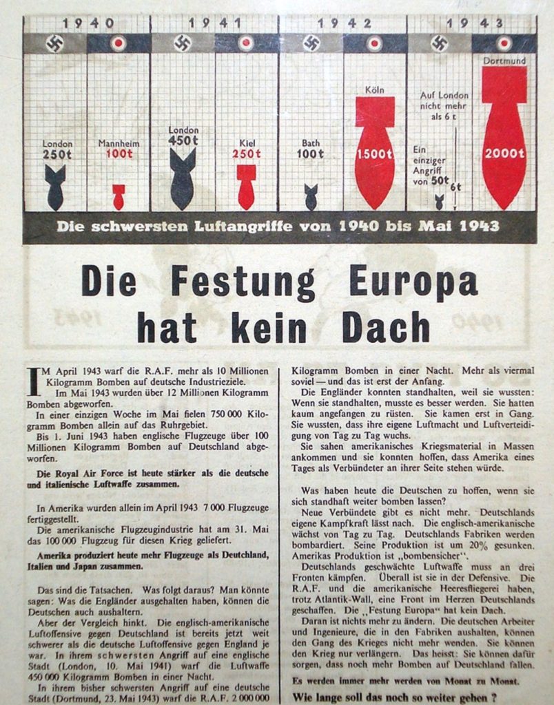 PSYOPS continued during the second world war, again with both sides dropping propaganda as well as explosive bombs on each other. The Germans gave some of their infamous V-1 flying bombs a dual purpose, having them eject leaflet canisters via the detonation of a small charge that dislodged canisters full of propaganda while in flight. Not much of the disinformation reached its intended targets, however. Because of the speed and altitude at which they were released, the leaflets tended to drift many miles from their intended targets ending up in lakes, highly rural areas, and sometimes the English Channel.