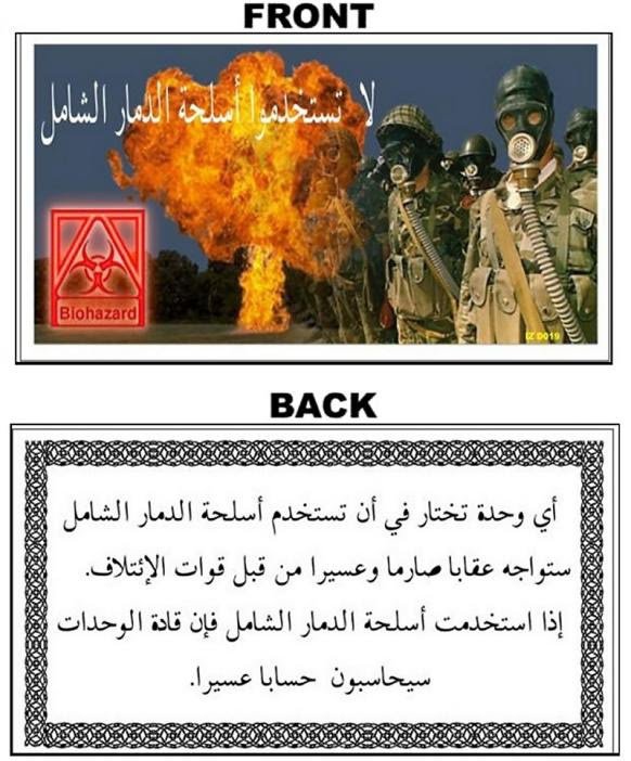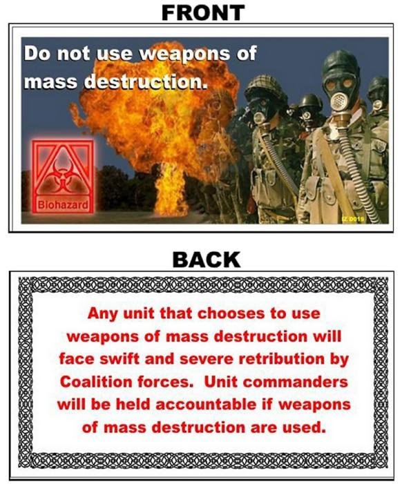 Iraqi leaders claimed the leaflets were contaminated with chemical or biological agents to discourage their citizens from picking them up. To reinforce this impression, they wore protective suits as they disposed of the leaflets.
