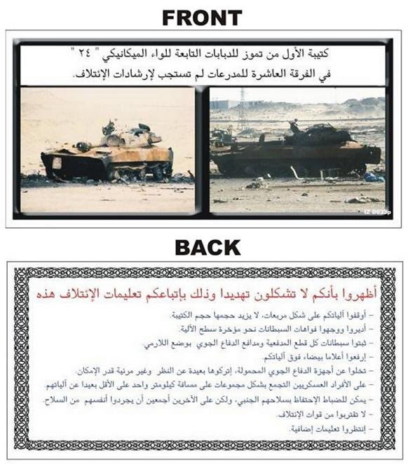 I did mention that propaganda leaflets are a two-way street. Here are three examples of what the Iraqis dropped on us during Operation Desert Storm.