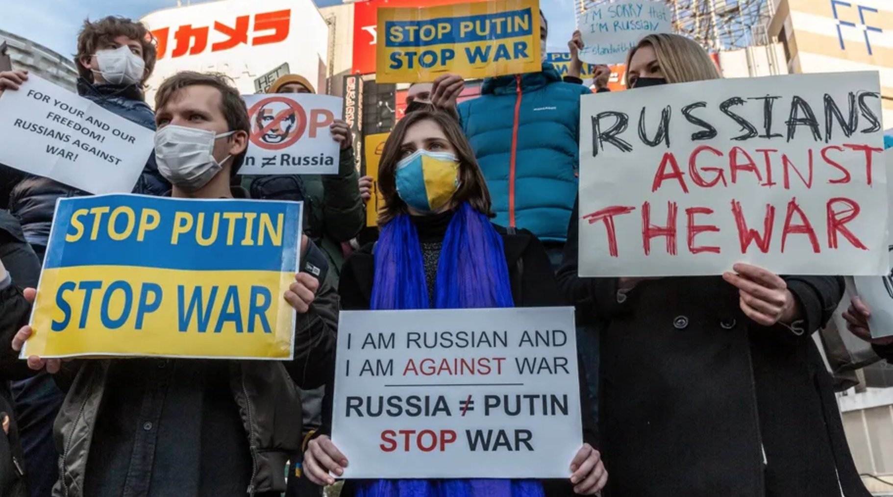 Young Russians protesting Putin’s “special military operation” in Ukraine. Image Credit: progressive.org