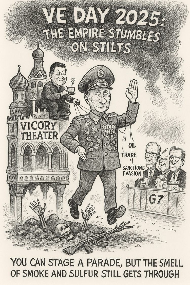 Victory Day used to mean something. Now it’s a cheap charade—a rotting stage with a man in denial at the center, playing dictator while the roof collapses. He’s turned Russia into a mafia state on life support, propped up by Chinese IOUs and the kind of nationalist propaganda that saw the decline of the Soviet regime.
