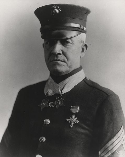 Depicted is then-Gunnery Sergeant Daniel Daly, a double recipient of the Medal of Honor. (Unknown author, Public domain, via Wikimedia Commons)