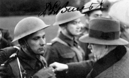 E. Benes awards J. Gabczyk and J. Kubis (1940). (Unknown author, Public domain, via Wikimedia Commons)