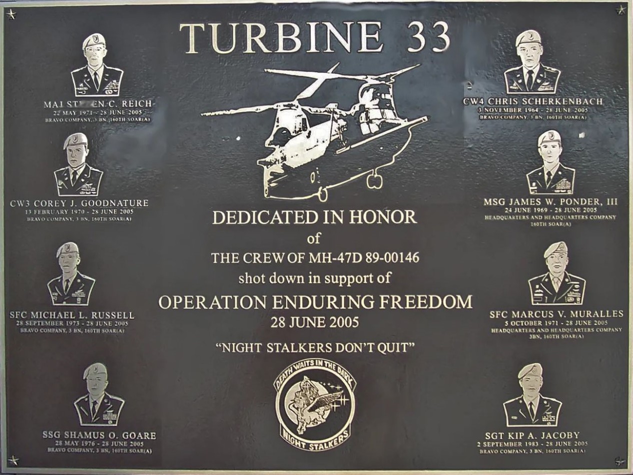 Two MH-47 Chinooks, call signs Turbine 32 and Turbine 33, carried the eight Army Night Stalkers and eight Navy SEALs who responded to Murphy’s call for help. As Turbine 33 was in a hover and about to fast-rope the men aboard to the ground, a surface-to-air missile took it down. The helicopter hit the side of the mountain and killed all aboard. Turbine 32 was taking sustained ground fire at this point and pulled away hard to circle the mountain and look for survivors.