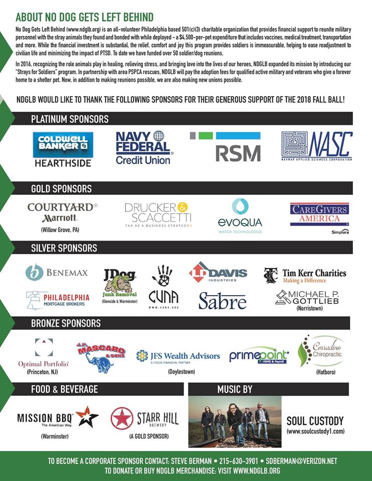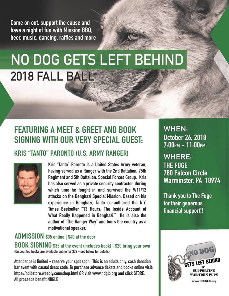 Coming soon: No Dog Gets Left Behind will be hosting its annual Fall Ball, an event aimed at raising money to reunite more dogs that have bonded with U.S. service members overseas.
