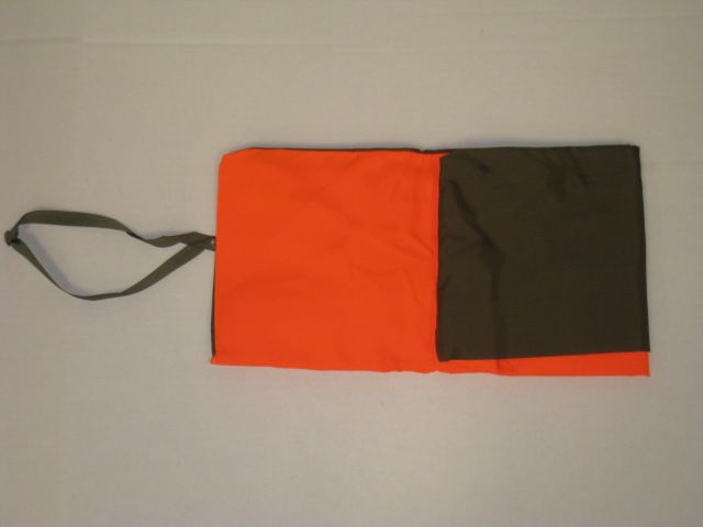The military VF-17 signal panel is flat olive drab green in its folder configuration and opens into a vibrant orange sheet of approximately 2′ x 3′. It can be seen from the air for great distances.