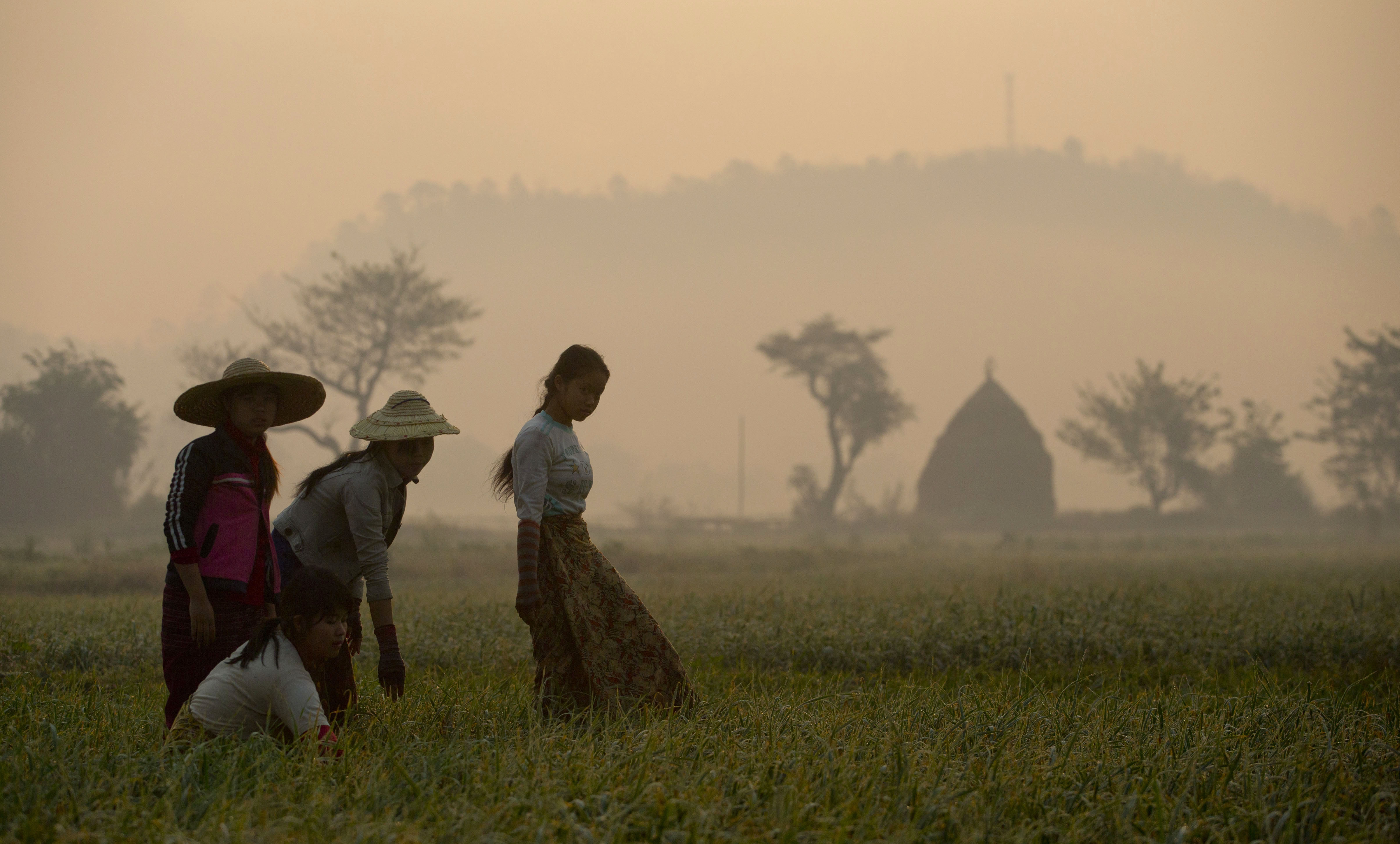 In this Feb 22, 2013 photo, farmers uproot weeds in a garlic cultivation farm near Mong Pan, in a region known for drug smuggling and a decades-old insurgency, in central Shan state, Myanmar. | AP Photo/Gemunu Amarasinghe