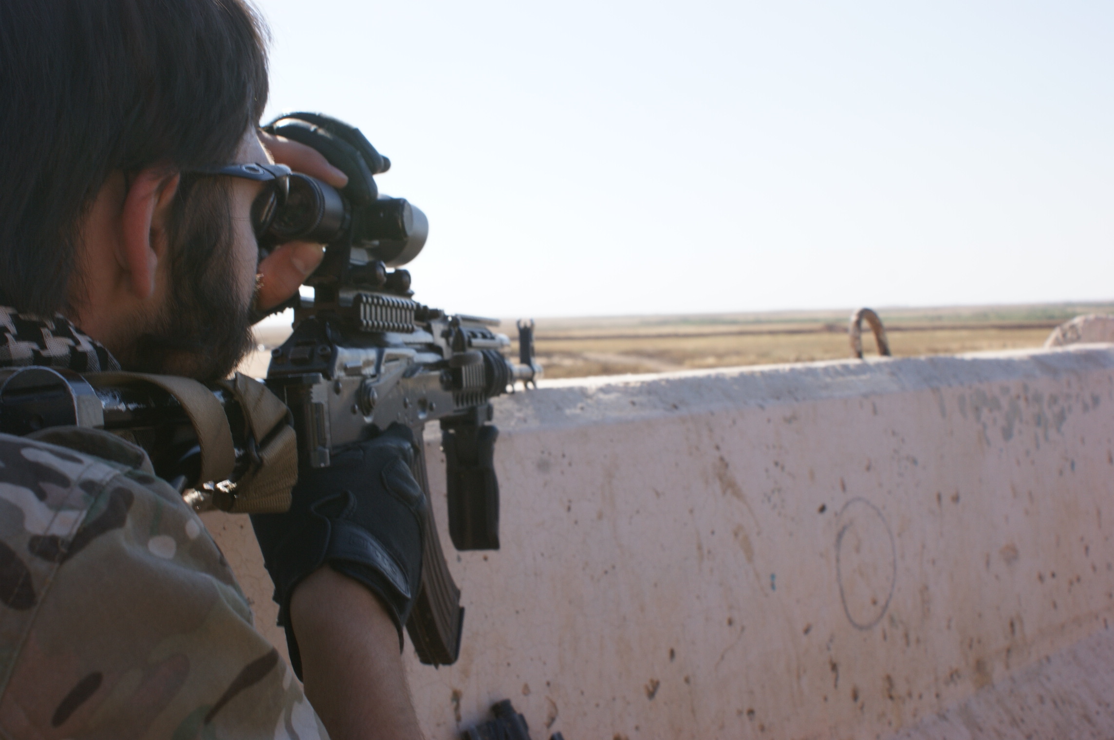 “Can you see the black flag over there?” It’s hard to spot in the bright sunlight. At about the halfway mark, the Kurdish flag waves in the wind. The village behind it is controlled by ISIS—that’s how people refer to them when talking English. But this afternoon, the Islamic State remains silent. According to a volunteer with multiple tours in the sandbox, the enemy is tactically capable. One time, as the Peshmerga pursued ISIS, the jihadists fell back and led them right into an ambush, which they barely escaped.