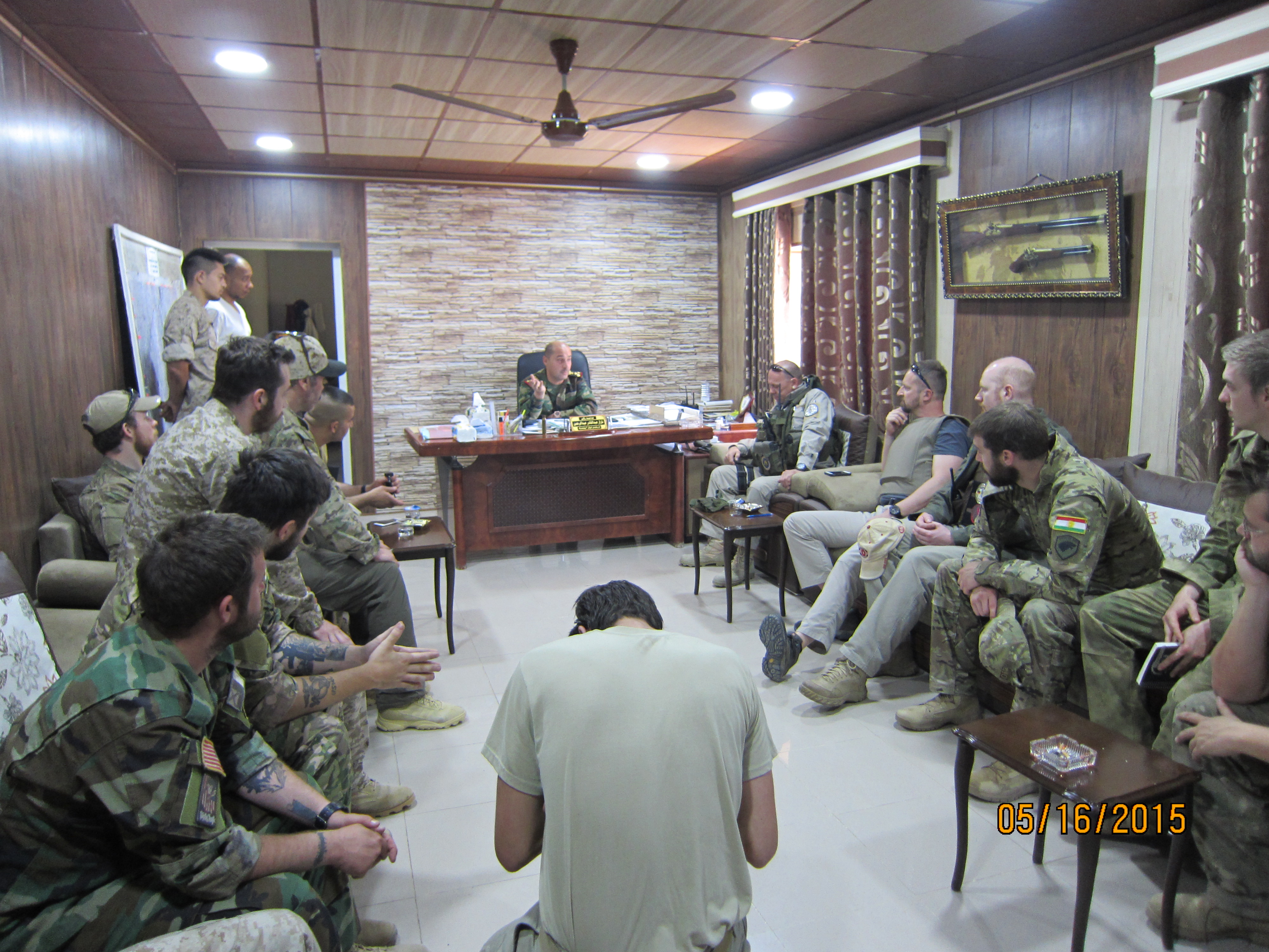 But General Aras wants to focus on something else. His quick-reaction force (QRF) is composed solely of Western volunteers who joined the Peshmerga in their fight against Daesh. The door opens and two young men enter. They are obviously neither Iraqis nor Kurds. Three more follow, then a couple more. Greetings are exchanged in English. Most of the 15 men are Americans, predominantly from the U.S. and a couple from Canada. One volunteer is European. Some of them are former U.S. Marines—one has a Combat Infantryman Badge (CIB) of the U.S. Army pinned to his plate carrier. Another says he has no prior military experience but wants to make a difference.