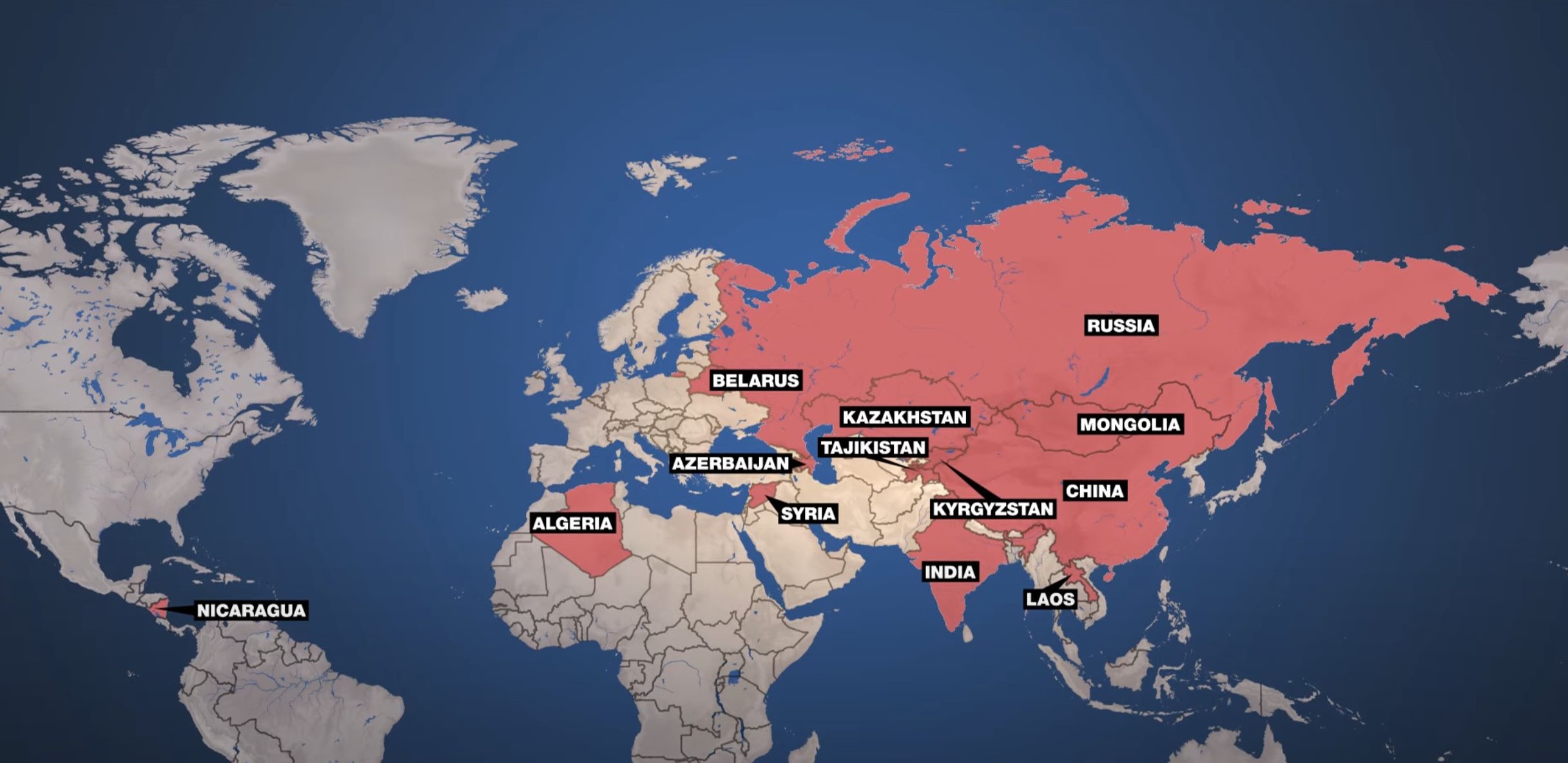 The nations participating in Vostok 2022. Screenshot from YouTube via France 24
