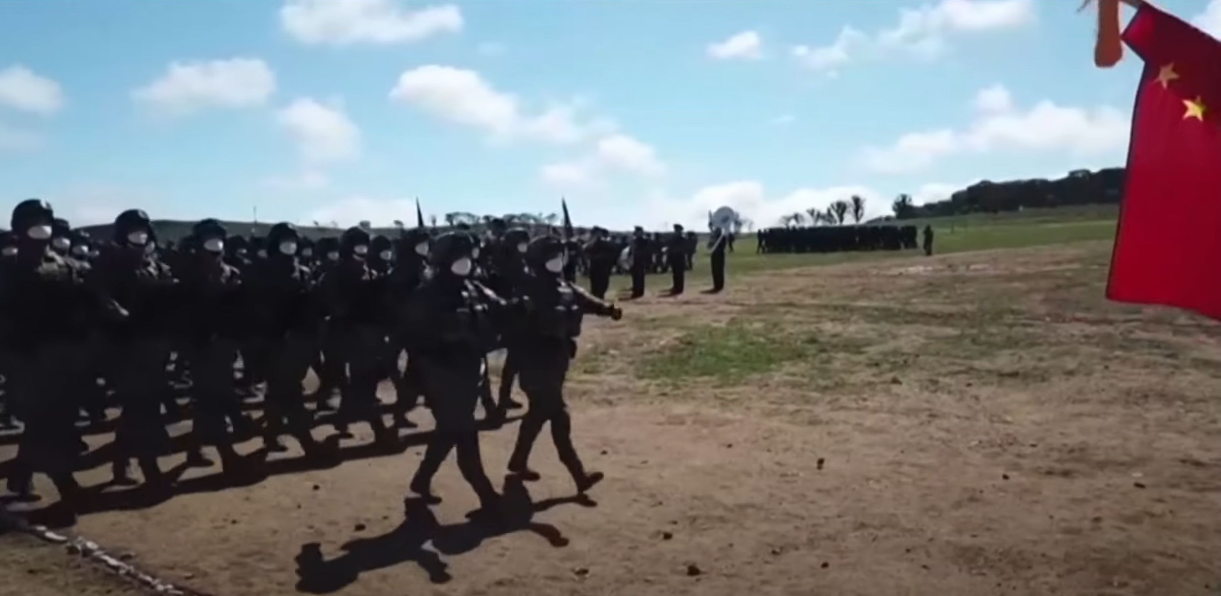 Really poorly maintained parade grounds. Screenshot from YouTube via France 24.