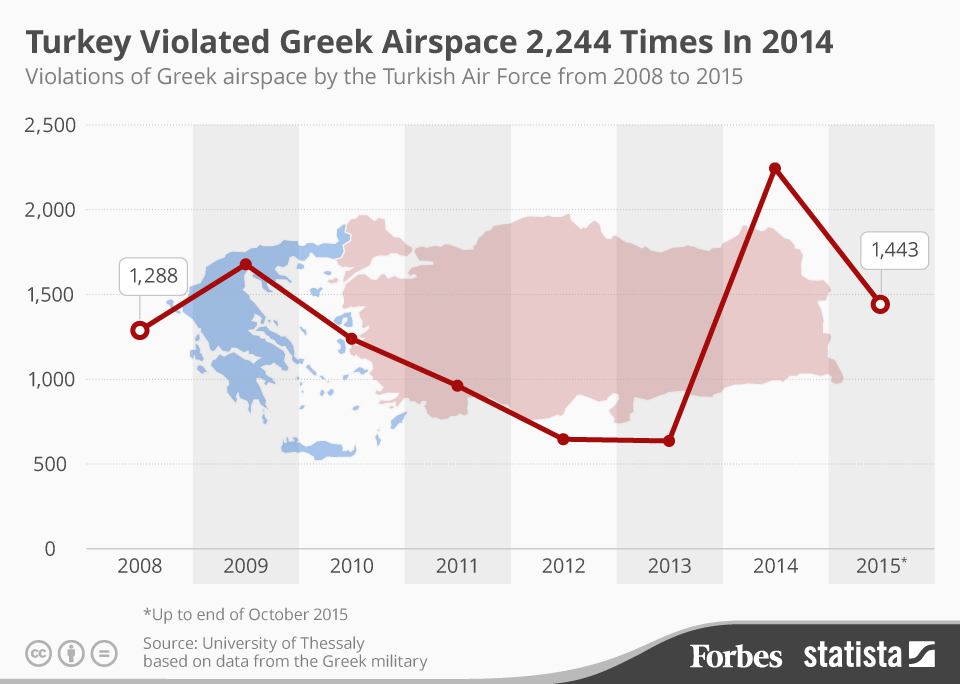 The Turks have also had a bone to pick with Russia following Russian airstrikes on Syrian-Turkmen villages targeted for harboring Daesh tactical targets. Despite the backdrop, Turkey is claiming border security concerns as their defense in the incident. This is an unfounded claim, as Turkey is one of the most prolific airspace violators in the modern world: They’ve accounted for many unauthorized airstrikes against Kurdish groups in Iraq, and 2,224 airspace violations into Greece in 2014 alone. In fact, a formation of six Turkish fighter jets violated Greek airspace on the 26th of November—just days after the Russian jet incident.