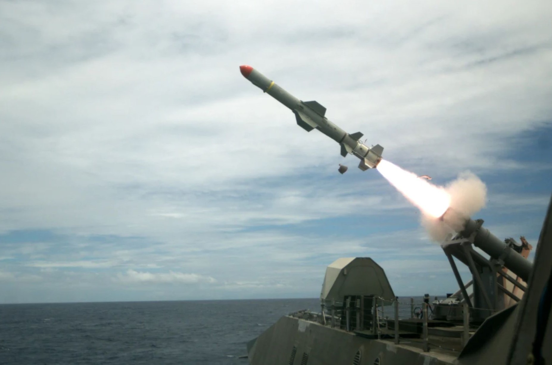 A Harpoon Block 1C missile currently available to Ukrainian forces is shown here, being launched in 2016. Image Credit: Bryce Hadley/US Navy