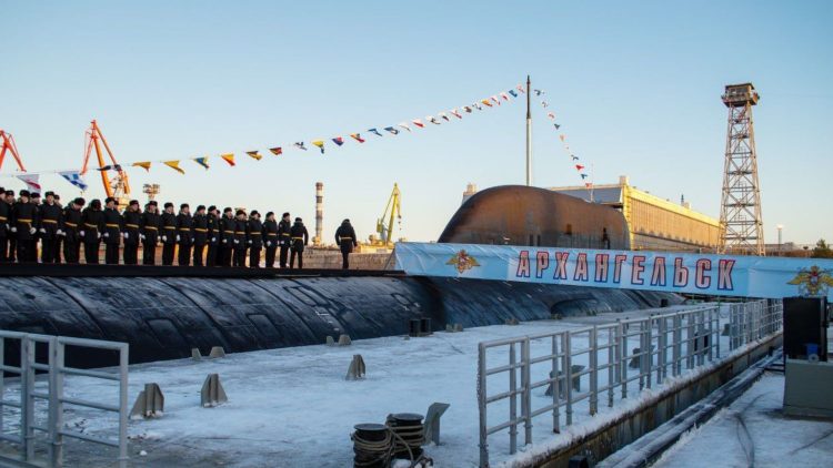 Russian Navy heralds the arrival of the ‘Arkhangelsk’ nuclear submarine. In a ceremony at shipbuilder Sevmash, this state of the art sub was introduced to the Navy’s existing fleet, with four more currently under construction. pic.twitter.com/Ha1dtjTZLq