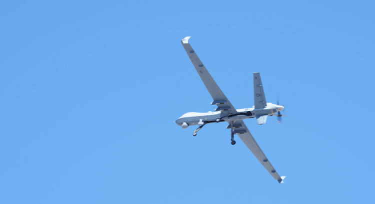 An MQ-9 Reaper, assigned to the 432nd Wing/432nd Air Expeditionary Wing, flies over Creech Air Force Base, Nevada, March 16, 2023 (Image source: DVIDS)