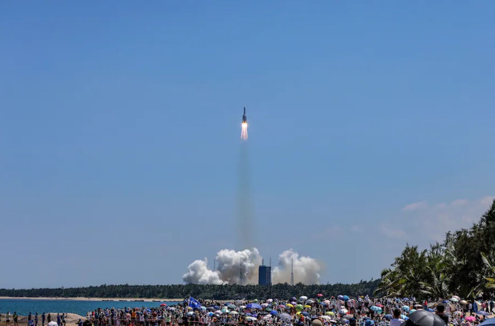The Long March 5B carrier rocket blasts off from the Wenchang launch site in China’s Hainan province on July 24. Image Credit: Zhang Liyun/AP