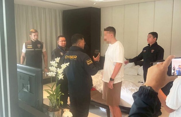 Lukashev being arrested in Phuket. Image Credit: Khaosod English