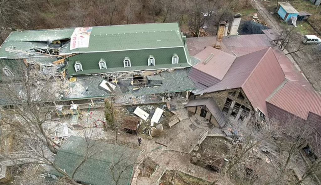 The Inn where Rogozin and others were injured in a precision strike. Screenshot from dailymail.co.uk