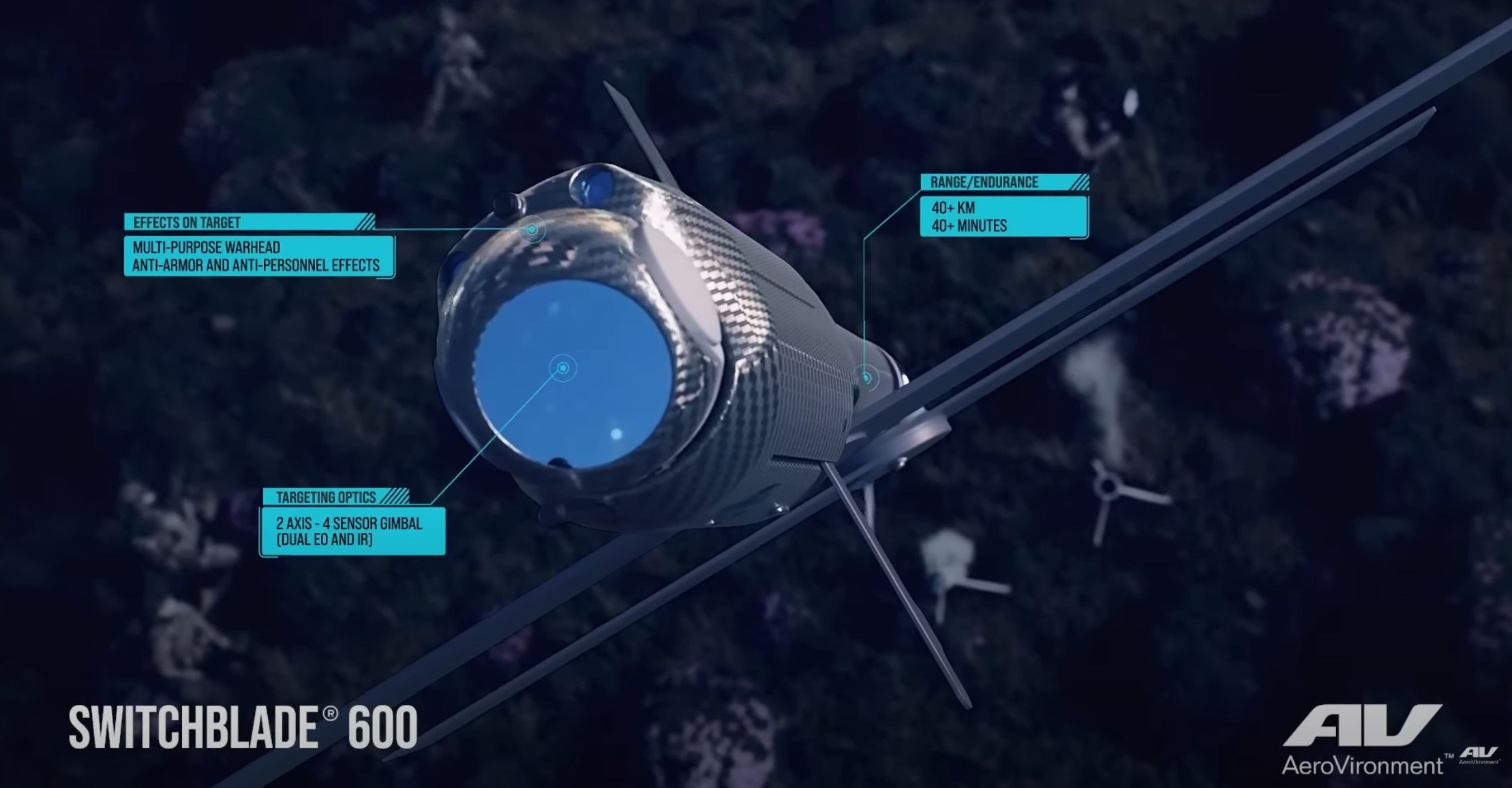The Switchblade 600 tank killer. Screenshot from YouTube and AeroVironment
