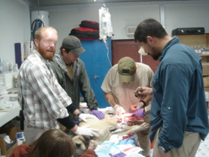After she was done on the operating table, and Doc Bill, covered in her blood and looking like he had just spent hours in surgery in some U.S. hospital OR, declared her fit to go to post-op, we carried the old girl back to one of the empty sleeping rooms and got her settled in to recover. We put her on a soft club chair, wrapped her in a blanket, and took turns standing vigil over her, as she shivered in the room.