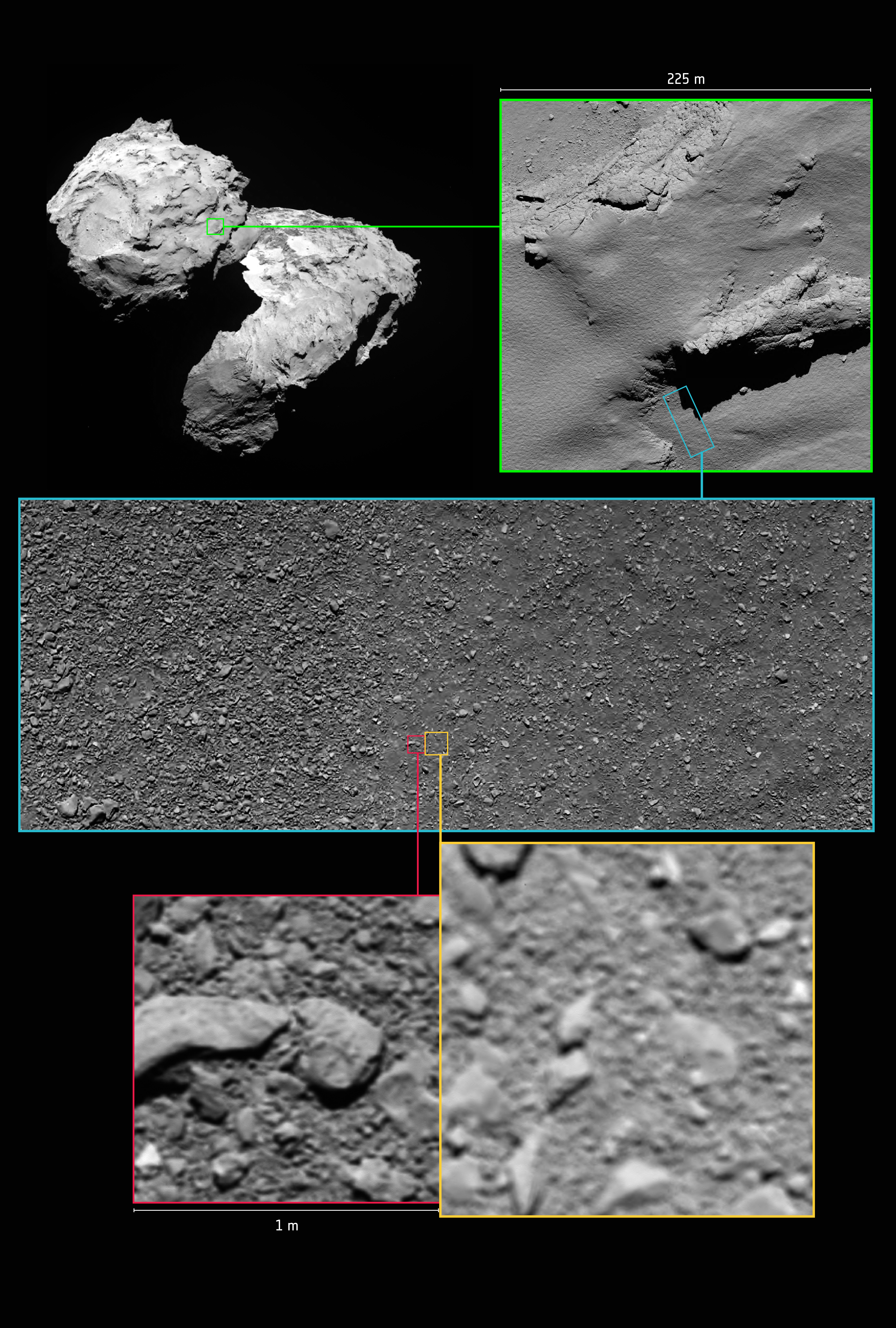 And here is a larger breakdown of the shown area, as compared to the overall surface of the comet.