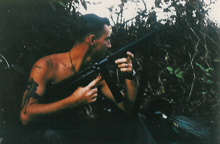 Jungling found himself almost dispassionately contemplating the odd way the rapidly approaching NVA soldier was dressed. He was wearing essentially nothing but a loincloth, and had pieces of cloth tied around his arms and legs. He also had what looked to be a cravat around his head, and on it was some kind of writing. When he was less than 20 feet away, the sapper began firing his AK-47.