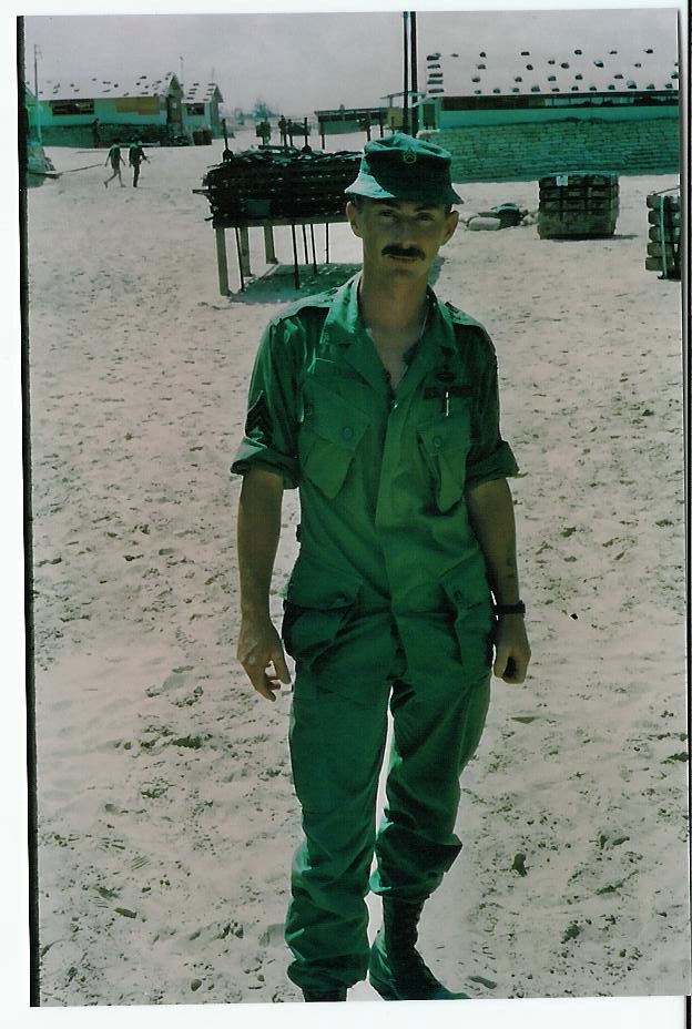 Peters yelled to a group of men firing from a sandbagged position across from where he was to let them know where he was and that he was going to try and reach them. They would cover him while he made his sprint. Just a few meters outside was a body with a CAR-15 and some ammo pouches on the ground next to it. As Peters stopped to gather these, he was shocked to see it was Bill Bric lying motionless in the sand. He had been gunned down by the NVA as soon as he rushed outside. Had Peters been able to respond as quickly and surely as Bric had, he would be lying next to him. Peters hesitated, but then picked up Bric’s weapon and ammo and quietly thanked him. With bullets cracking past him, and sand kicking up all around, Peters completed his mad dash to the enclosure. Godshall exited the bullet-ridded hootch a short while later and safely made it to another sandbag position. Jungling also confirmed that Bric was KIA.