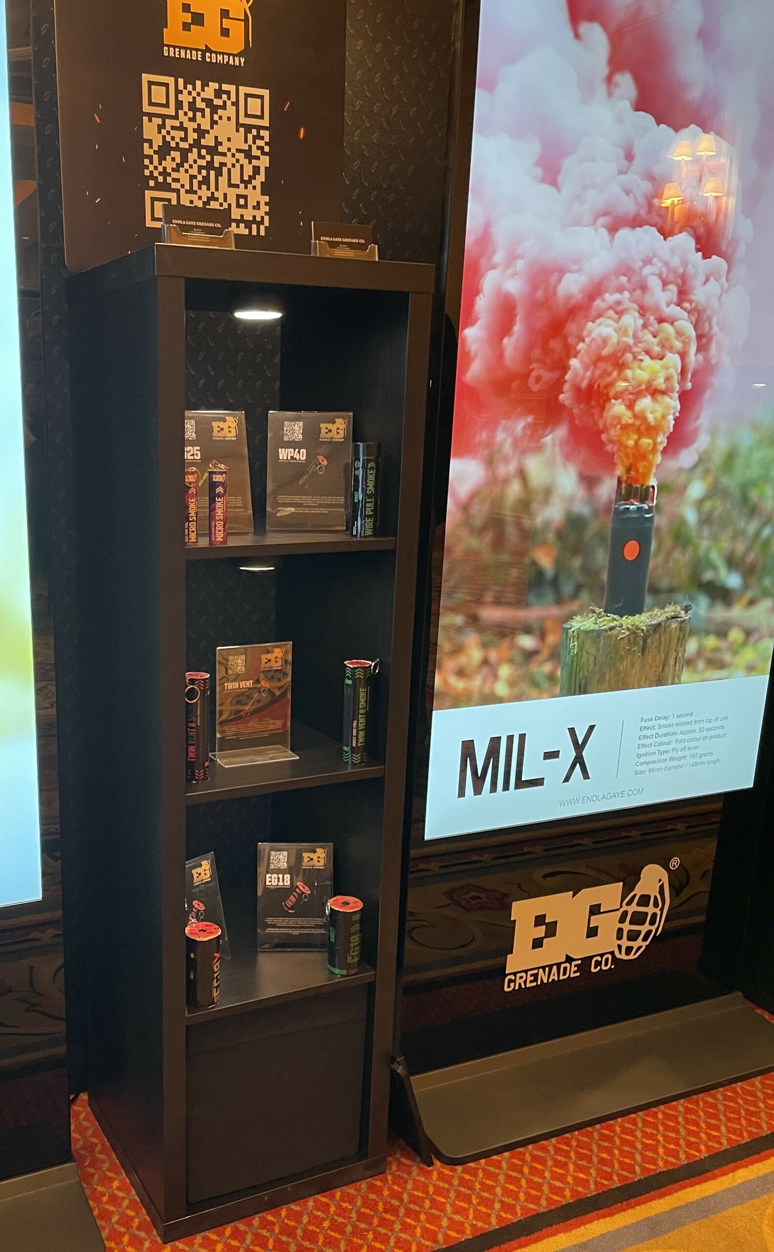 While perusing the miles of corridors of the recent SHOT, I came upon the brightly colored displays of EG Tactical Grenades.