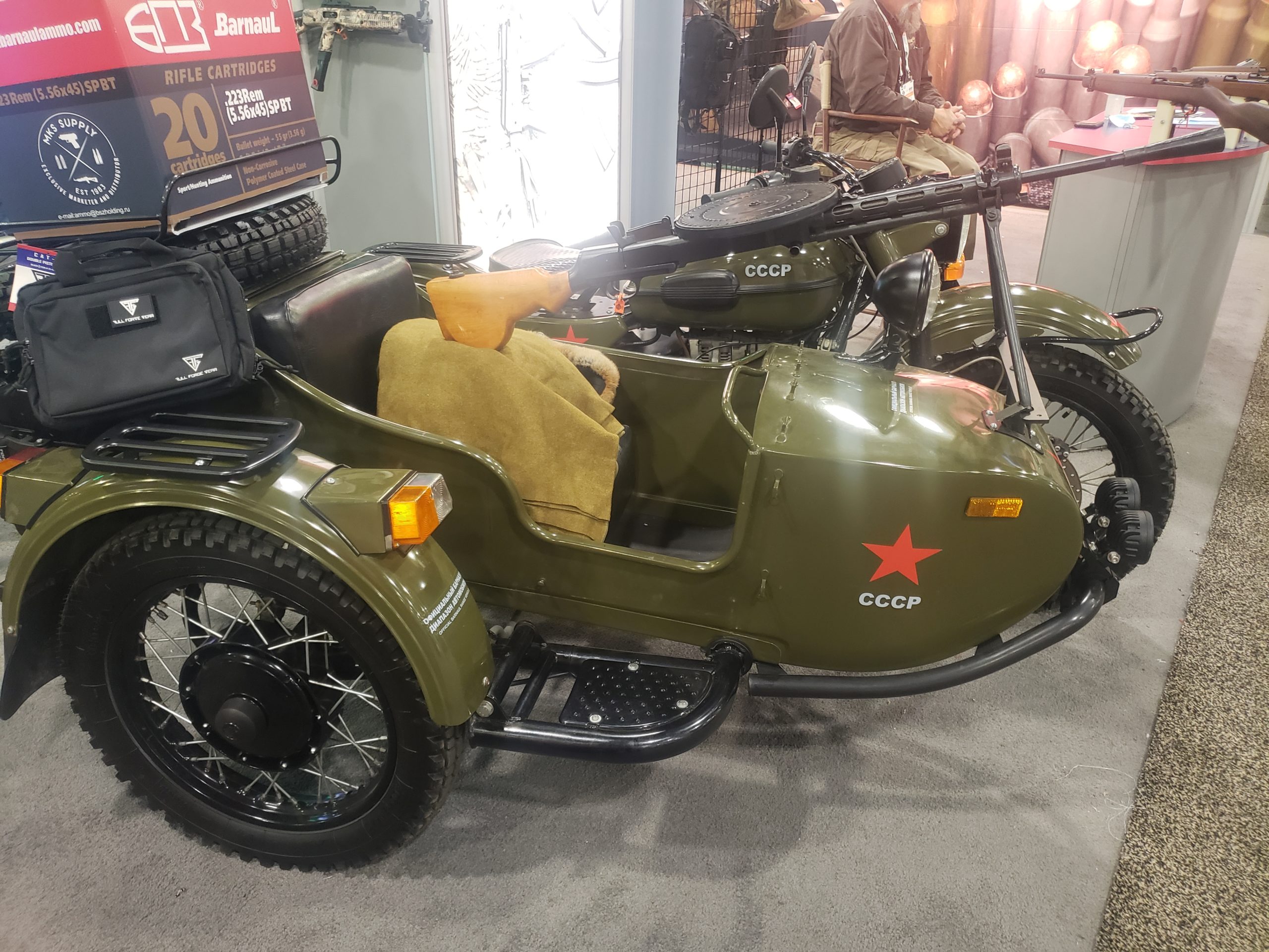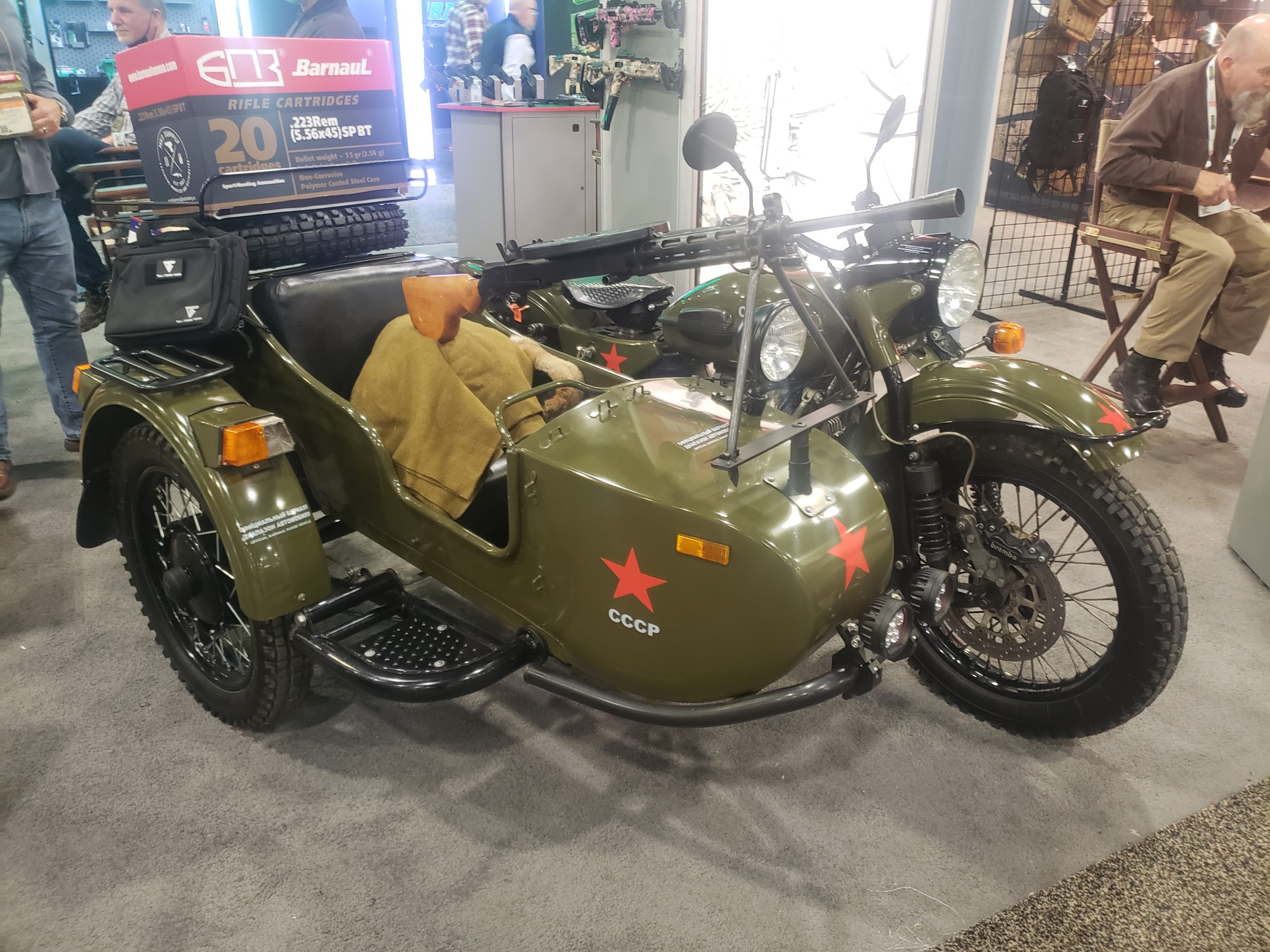 Not everything was for sale on the floor at SHOT Show, as this remake of this Soviet IMA-Ural scout motorcycle from WWII. This is a modern remake from Russia sold today for about $13,000 grand. The updated model includes a modern suspension, an overhead valve 4-cycle V-twin, Brembo brakes and gets 33mpg. You can also actually buy one as opposed to the Soviet-era days of filling out a six-inch stack of forms in triplicate and getting hauled in for questioning by the KGB as to why you thought you even needed one. Note the DP-27 Degtyayov light machine gun mounted on it.