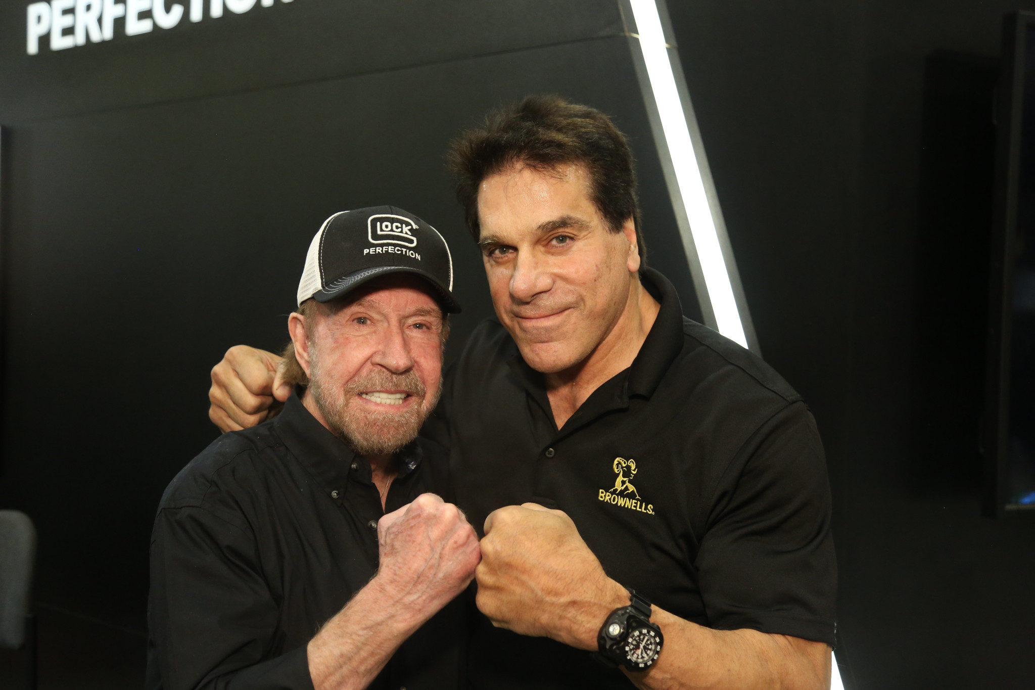 Chuck Norris didn’t go to the SHOW show, SHOT Show went to Chuck Norris. And look at the size of Lou Ferrigno’s mitts!