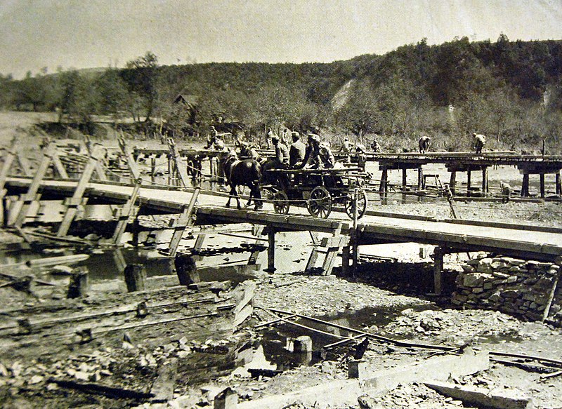 Bridge construction, Austro-Hungarian troops at war, 1916. (National Museum of the U.S. Navy, Public domain, via Wikimedia Commons)