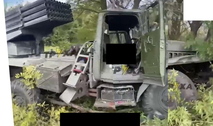 The photo below of the damaged Russian BM-21 “Grad” captured somewhere near Kharkiv may be an indication of this. It should be well to the rear of the front lines.