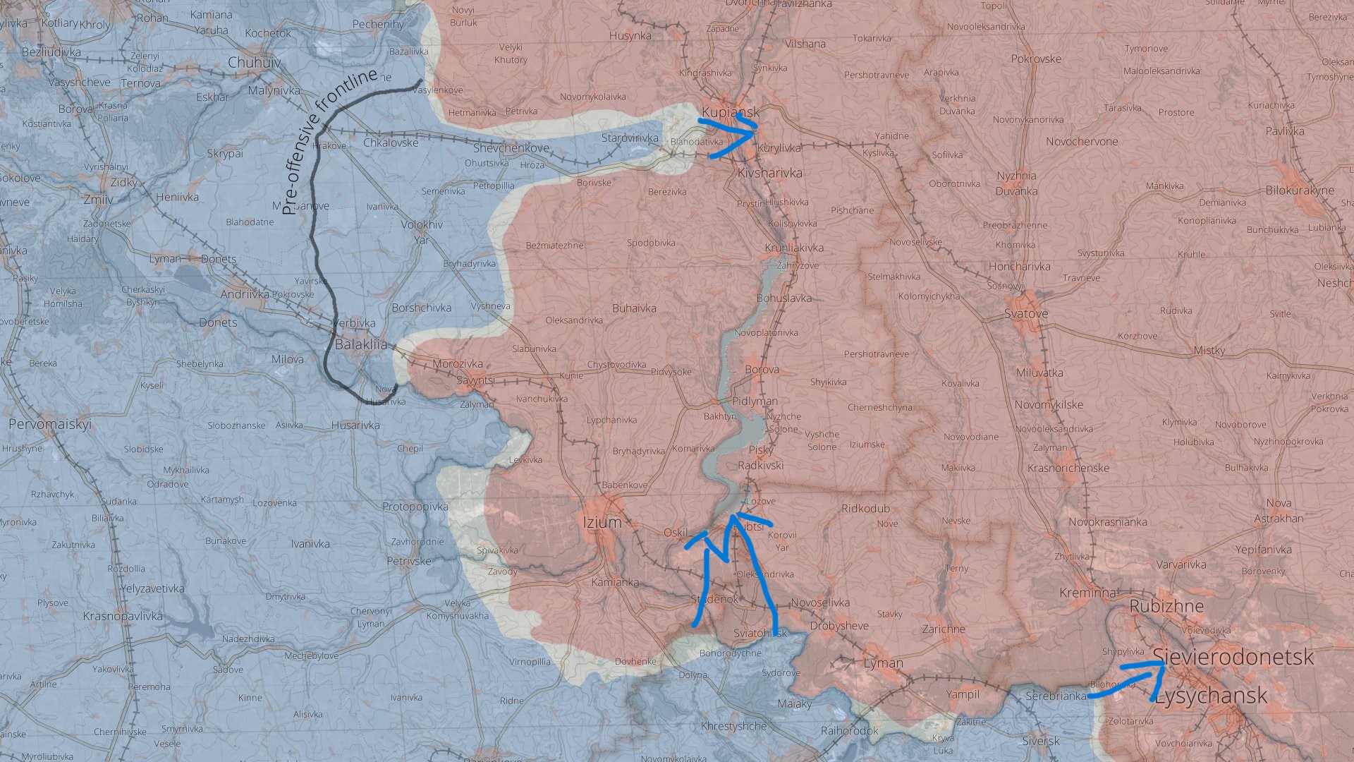The opening days of Ukraine’s offensive in the South towards Kherson seemed to be directed ultimately at driving into Crimea where Russia hasn’t had six months to position troops and fortifications. This initial attack may have been a feint to draw Russian forces to the South away from the actual objective, Kharkiv. In the last 24hrs Ukrainian forces have made an armored supported attack in the North in the direction of Izyum and Kupinsk. and are driving towards Severodonetsk. The Ukrainians used tanks and armored personnel carriers in approximately regimental strength to drive on the town of Balakleya following a prolonged artillery barrage. Izyum sits on logistics and communications lines to Kharkiv. To give some idea of how badly things are going for Russia in this sector, the Ukrainians managed to capture a live Russian LT Colonel, for once.