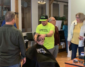 Matt, doing his magic and cutting a design into a young patron’s hair cut.