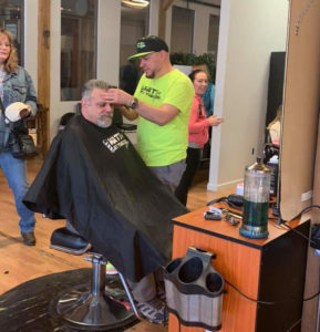 So, on that particular night, I had an epiphany. Believe it or not, I do sometimes have them — although many of our readers will beg to differ. So, after the Board of Selectmen meeting was over I shared my idea to several Board members: “Why doesn’t the Town have a Buzzoff Fundraiser for Cancer? People could come in, shave their heads or just get a buzz cut and all of the money raised will be given to the American Cancer Society in the Chief’s name.” One of the Board members, Kevin Krassopoulos the Director of Local Public Television, was immediately on-board and he and his wife Jen, who is a hairstylist at one of the nice salons in the area, took over.