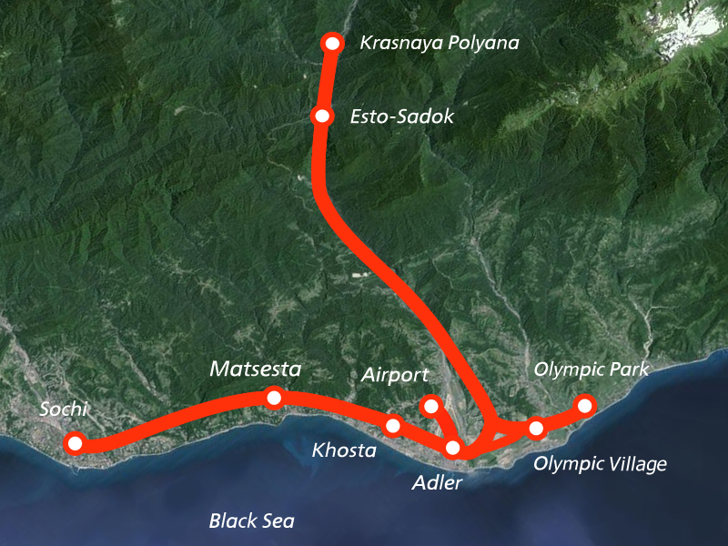 Lastochka high-speed rail Sochi routes, courtesy of eng.rzd.ru