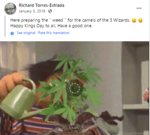 In 2018 Mr. Richard Torres-Estrada posted a GIF implying he was preparing “weed.” Maybe we should start with a drug test for the new hire.