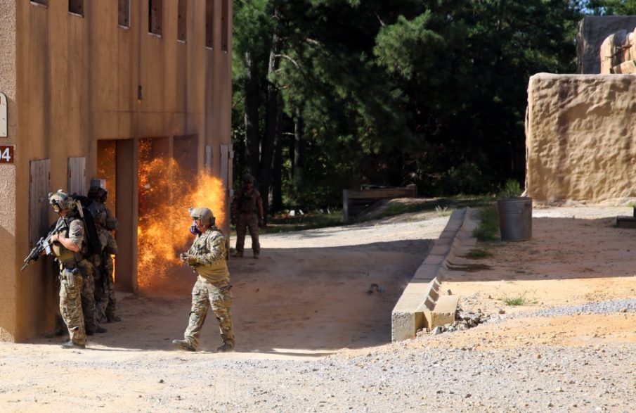 A Green Beret team assigned to 3rd Special Forces Group (Airborne) breaches a door at the inaugural United States Army Special Operations Command International Urban Assault Challenge, Sept. 27, 2017 at Fort Bragg, N.C. U.S. Army photo by Sgt. Derek Hamilton/Released Watch American forces conduct breach training in the video below: