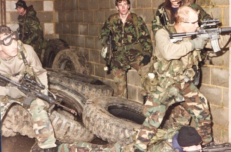 Delta operator MSG Samuel Booth Foster is shown here on the far right during a training exercise with the SAS.