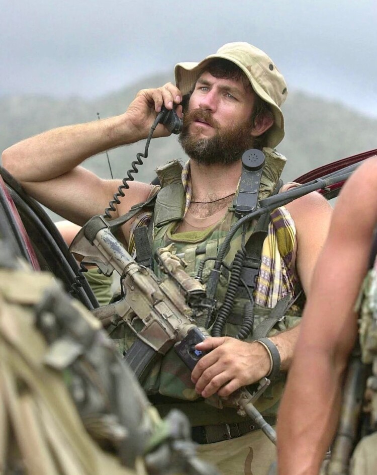 Here we see US Army Special Forces Operational Detachment Alpha (ODA) Commander Geoff Bruce in Afghanistan, 2002. Captain Bruce is calling in an airstrike on a compound near Narizah, Afghanistan, as part of Operation Mountain Sweep.