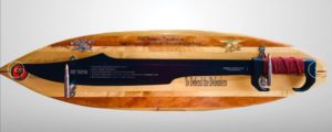 Among the military memorabilia are several nicely done wood carvings from Navy SEAL and Special Forces units, commemorative crossed paddles for CIA/SOF operations, a full-size commemorative Navy SEAL paddle, and a SOCOM wood carving with an engraved tomahawk celebrating the hostage rescue of Dr. James Phillips, an operation where SEAL Senior Chief Edward Byers would be awarded the Medal of Honor. Up for grabs is also a really nicely done Spartan sword that is mounted on a wood plaque and engraved with the “SOF Truths.” Many of these items can either be bid on or bought outright.